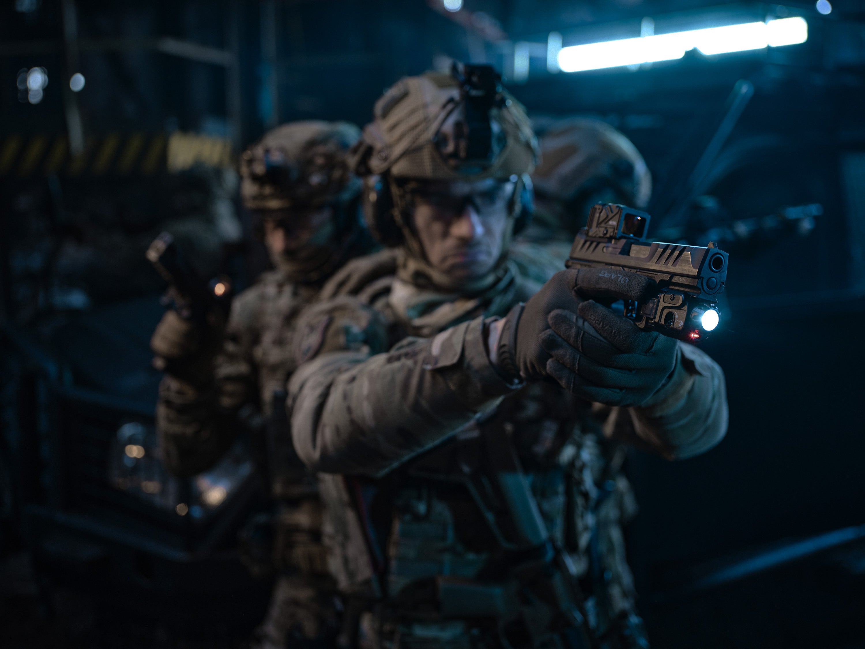It features a white LED technology with 500 Lumens, visible red laser and infrared laser. It is one of the most compact devices in its class, combining these three technologies.